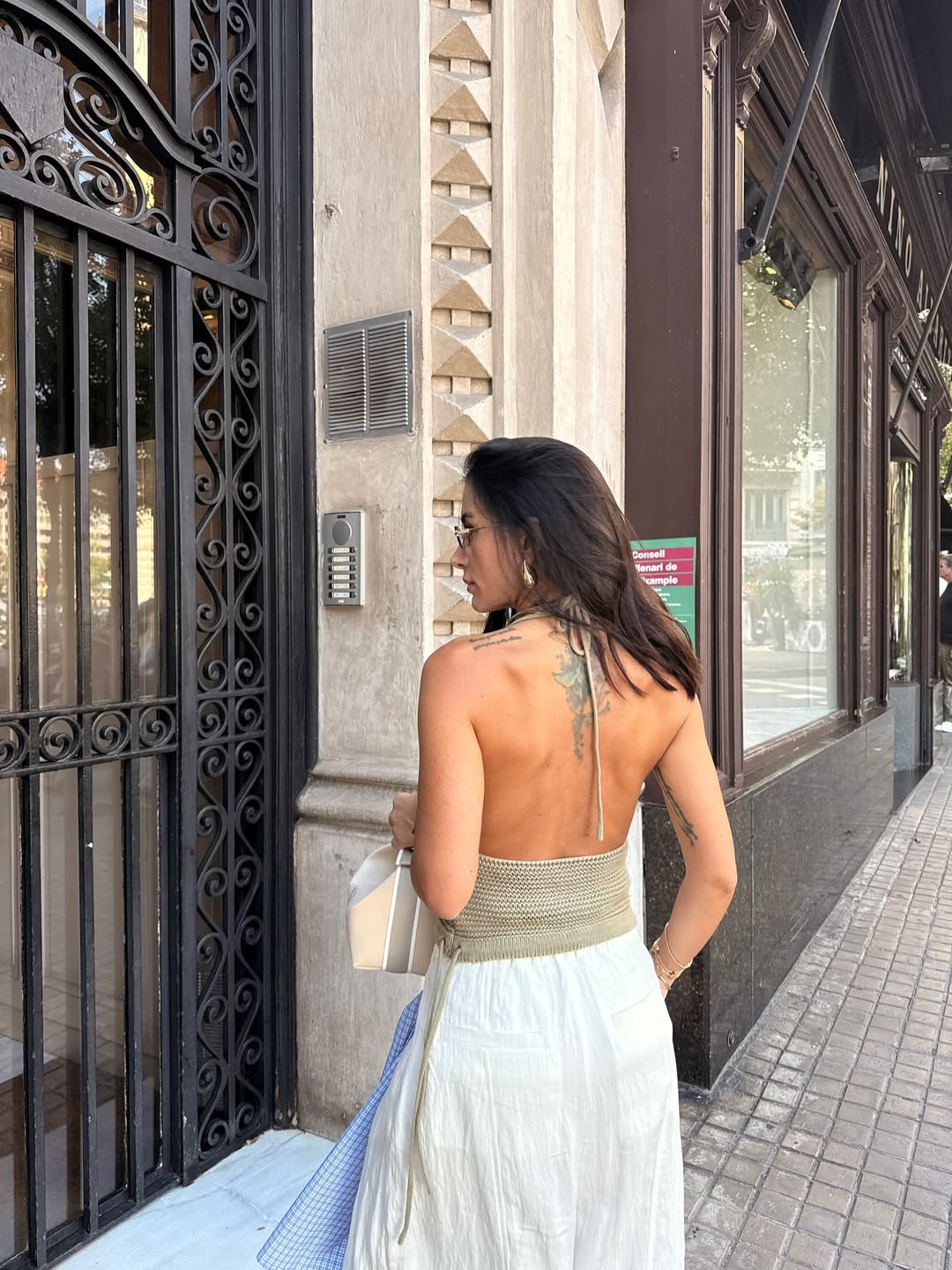 Perfect for layering or wearing solo, it lends modern grace to warm-weather wardrobes.