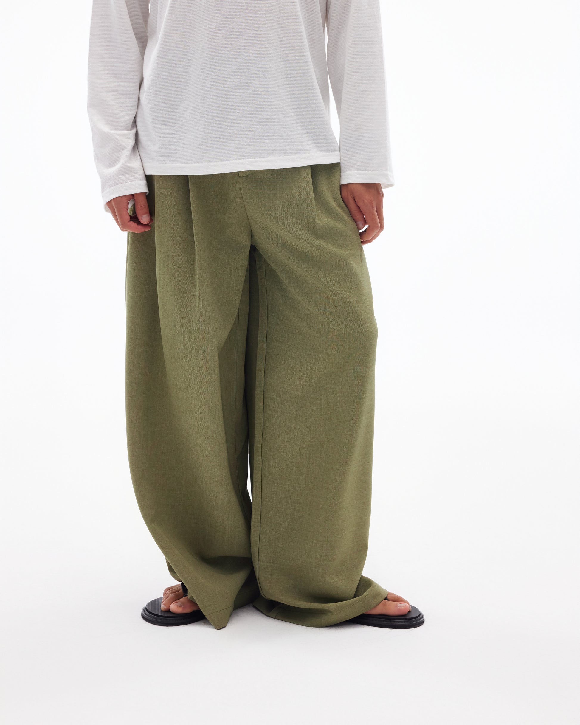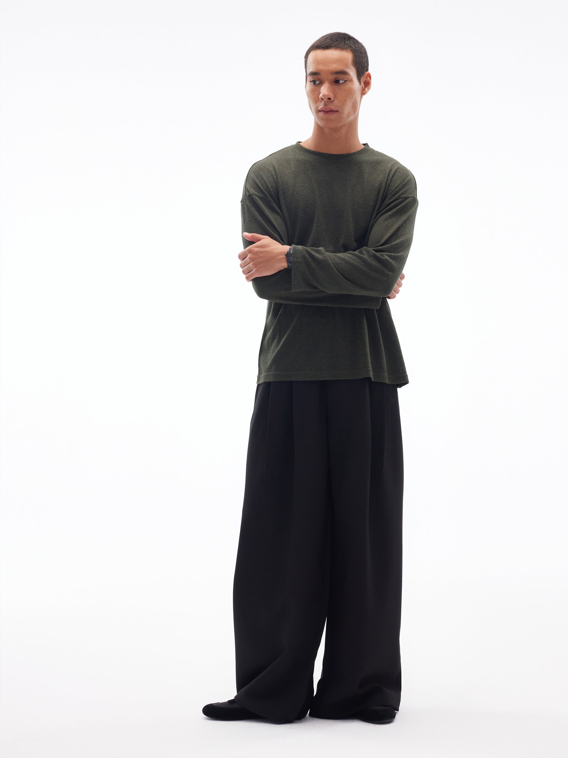 A fluid expression of relaxed style, the Wide-Leg Flow Pants offer a refined silhouette with a modern edge. Crafted from a soft and lightweight blend of polyester and spandex, they deliver ease of movement with a gentle stretch and drape that flatters all body types. Available in Black and Green, this versatile piece is ideal for laid-back days, creative workspaces, or elevated streetwear looks.