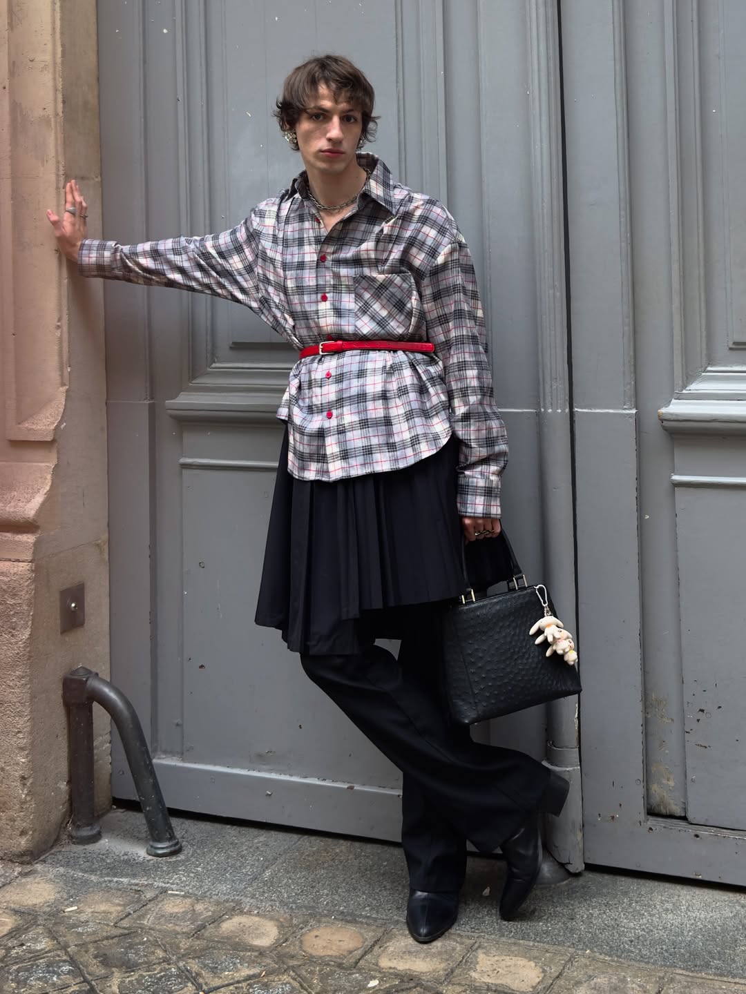 This structured shirt draws its silhouette from geometry and its depth from breath. Clean contrast plaid lines impose a sense of order, while the natural drape of cotton reveals softness beneath the surface. The result is a garment that balances precision and ease, construction and intuition.