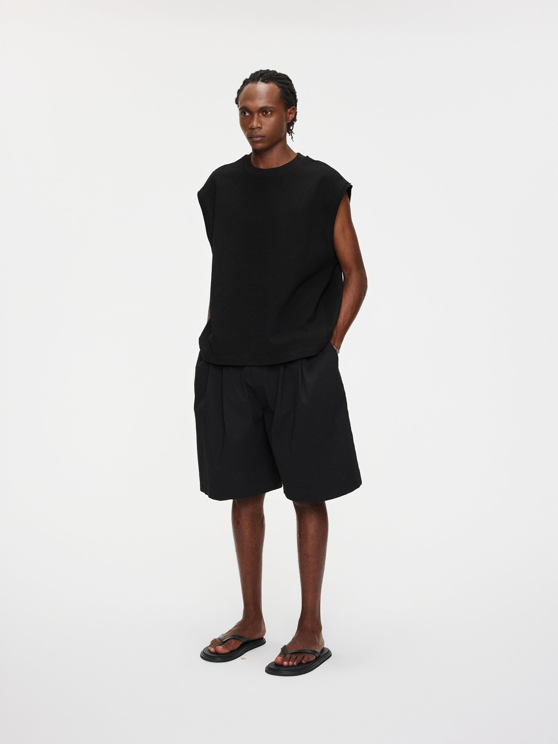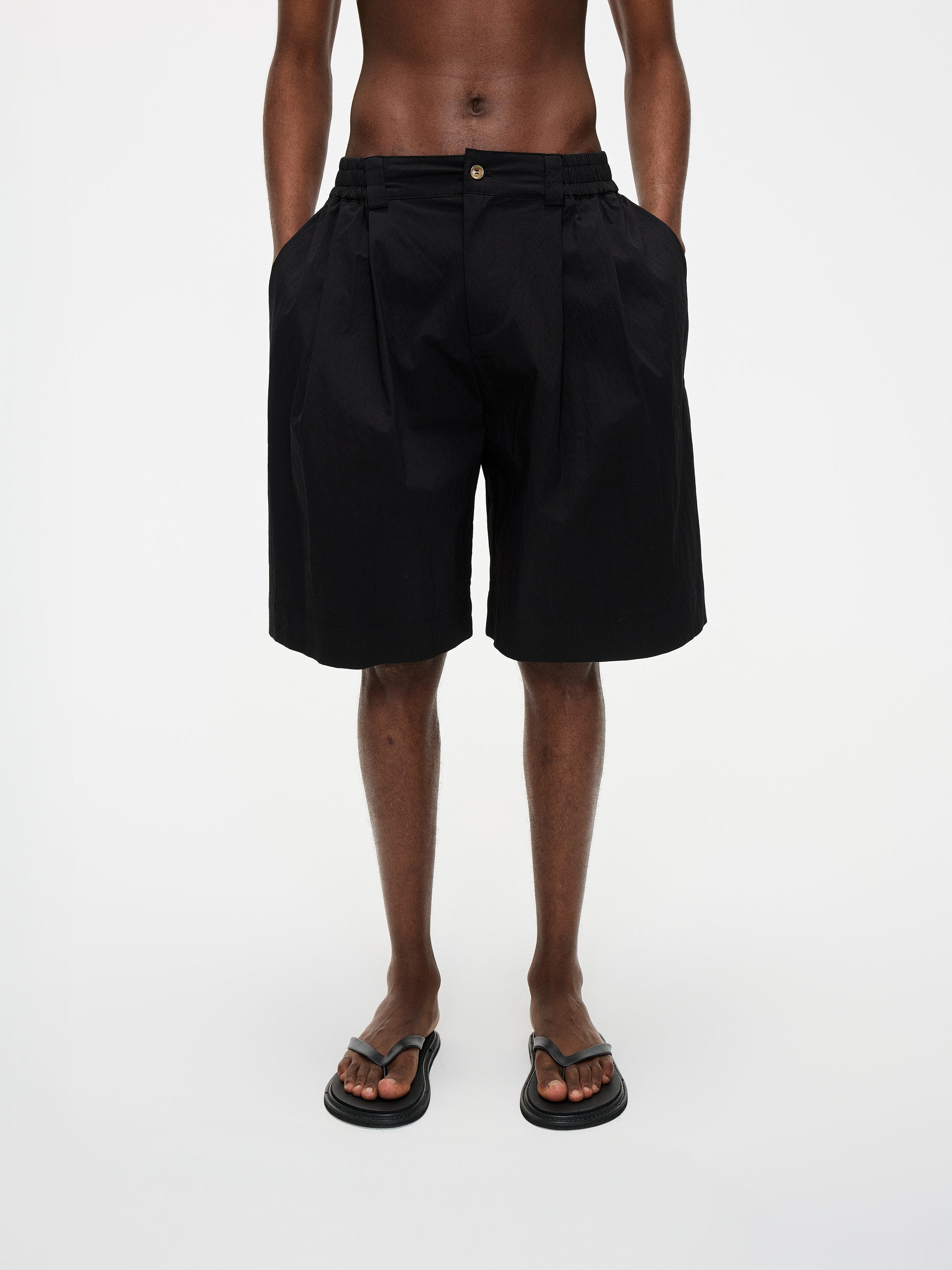 Classic tailoring meets casual freedom in these wide-fit, pleated shorts.